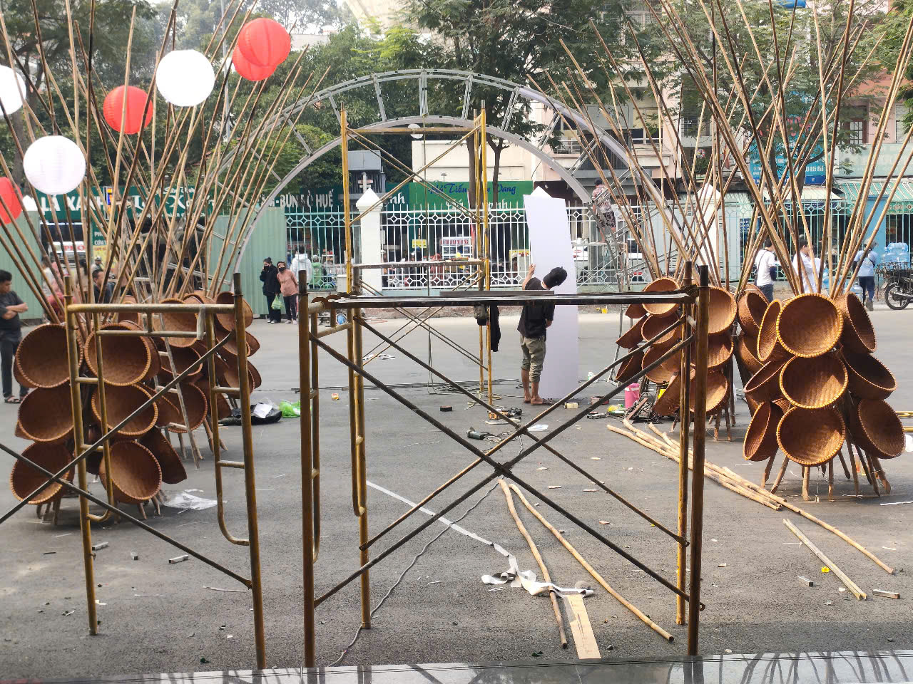 5. Tiểu Cảnh Trang Trí Tết 2025 Sáng Tạo Từ Hoa Giấy và Đèn LED